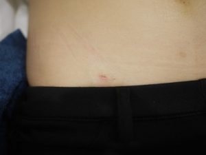 左右の5㎜と3㎜を比較すると、5㎜の傷のほうがやや大きく見えますが、数ヶ月が経過するとほとんど傷がわからなくなります。