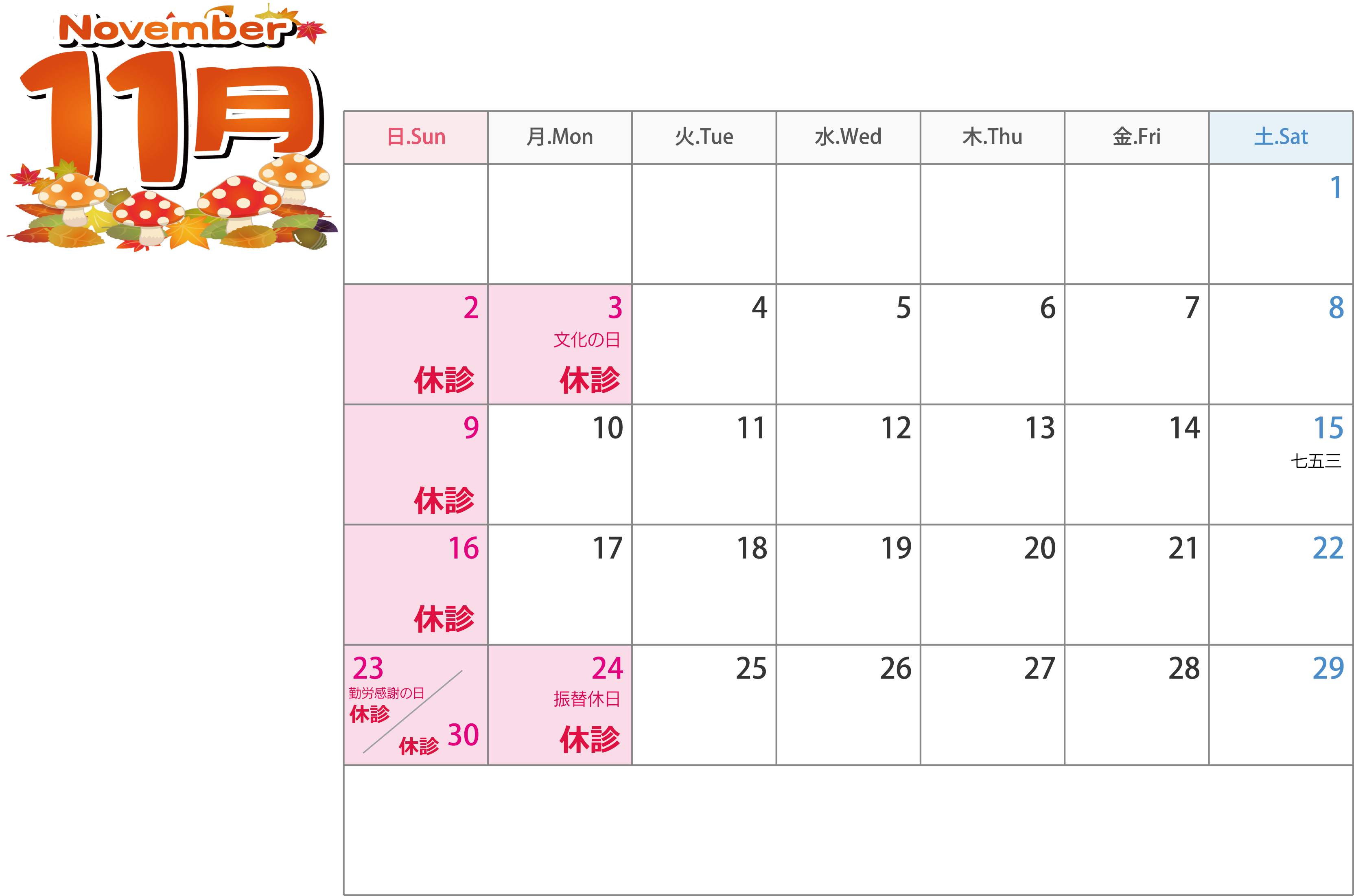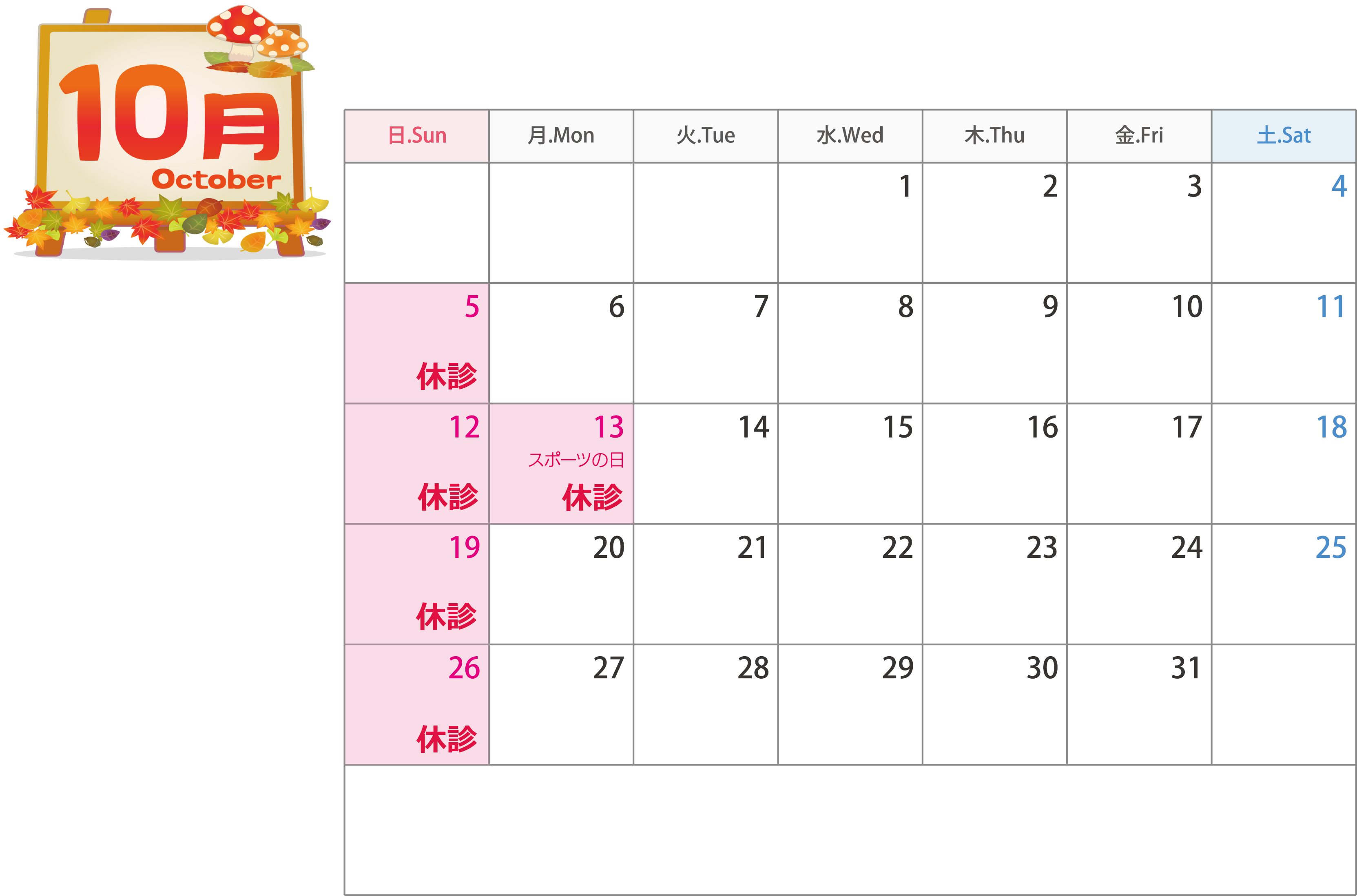 手術日最短は10月23日(木)/ 10月・11月の診療カレンダーはこちら